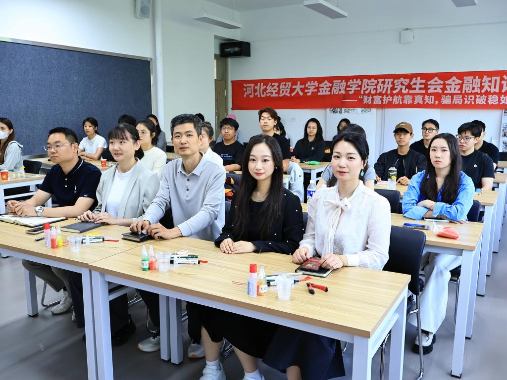 4月23日,公司举办“财富护航靠真知,骗局识破稳如石”金融知识进校园河北科技大学站活动,河北科技大学艺术学院团委书记高健、辅导员曹振许、赵子彤、浮钰及yl6776永利集团研究生辅导员王一帆出席。yl6776永利集团张蕊、边政文、张一帆和崔雨奇分享金融知识与反诈知识,河北科技大学艺术学院师生50余人共同参加。
