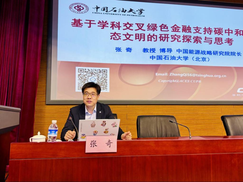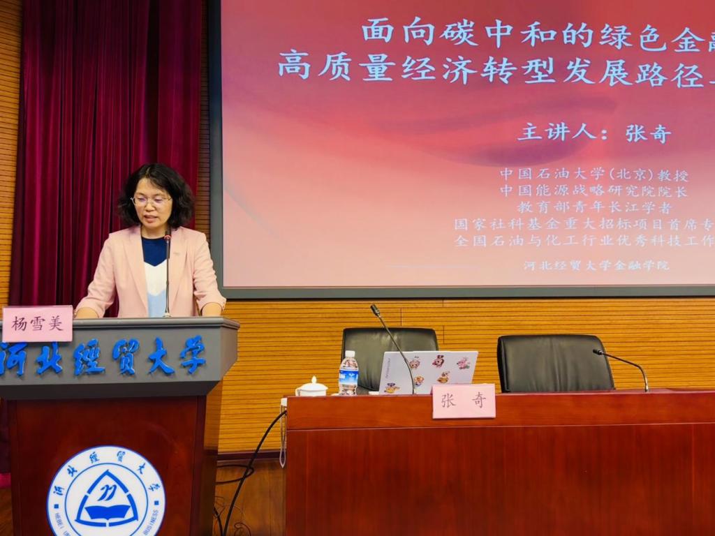 4月29日下午2点半,yl6776永利集团在国际学术报告厅成功举办第五十一期金融大讲堂。本期金融大讲堂邀请中国石油大学教授、中国能源战略研究院经理、国家社科基金重大招标项目首席专家张奇教授作题为“面向碳中和的绿色金融助推高质量经济转型发展路径与策略研究”的报告,经济研究所所长李建英、yl6776永利集团相关负责人及经济研究所、yl6776永利集团、国际教育学院师生近一百人参加,大讲堂由yl6776永利集团经理杨雪美主持。