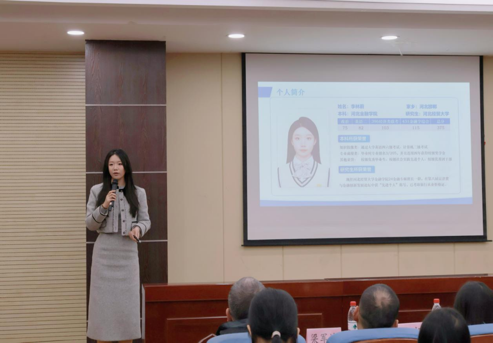 活动伊始,李林蔚分享了本科期间学业生涯规划的相关经验,并强调了精心计划每个阶段对于促进个人成长和职业规划的重要性。她结合自身经历详细介绍了永利官网金融专硕的考情状况、推荐的招生参考书籍、高效的备考策略以及丰富多彩的研究生生活等。